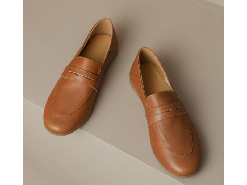 • Soft Real Leather Penny Loafers Women Round Toe Flat Casual Shoes Beige Brown 2023 Spring Leisure Slip- ons Flats Ladies